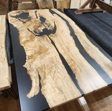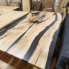 Live edge slab raw edge slabs rustic birdseye maple slabs with lots of character, detail, knots and cracks filled with black dye epoxy with gold metallic flakes. Handcrafted, custom designed handmade hardwood dining table with lots of grain and character for a beautiful, luxury, unique, rustic modern dining table. Handmade custom wood table farmhouse table live edge epoxy table alberta calgary red deer edmonton